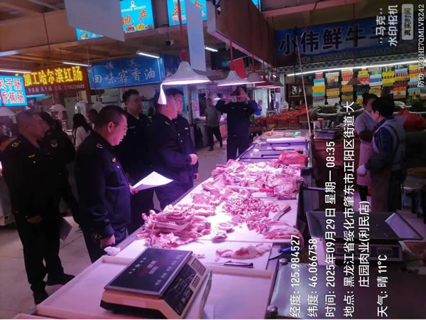 隨著中秋、國慶“兩節(jié)”消費旺季臨近,為守護市民餐桌安全、規(guī)范節(jié)日肉類市場秩序,肇東市農(nóng)業(yè)農(nóng)村局牽頭,聯(lián)合市市場監(jiān)督管理局、市公安局食藥環(huán)偵大隊組建專項執(zhí)法檢查組,深入城區(qū)農(nóng)貿(mào)市場、生鮮超市、肉類專賣店等重點經(jīng)營場所,開展肉類食品安全聯(lián)合執(zhí)法檢查行動,以“監(jiān)管+服務(wù)+共治”三維發(fā)力,為節(jié)日市場筑牢安全屏障。