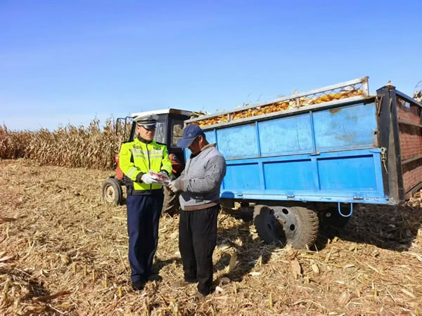 進入秋收時節(jié),也正值國慶、中秋假期,為確保秋收農忙期間轄區(qū)農村道路安全形勢持續(xù)平穩(wěn),全力遏制和減少道路交通事故。肇東公安交管大隊民警放棄休息時間,積極開展“護農秋收”活動,筑牢農村地區(qū)交通安全防線。