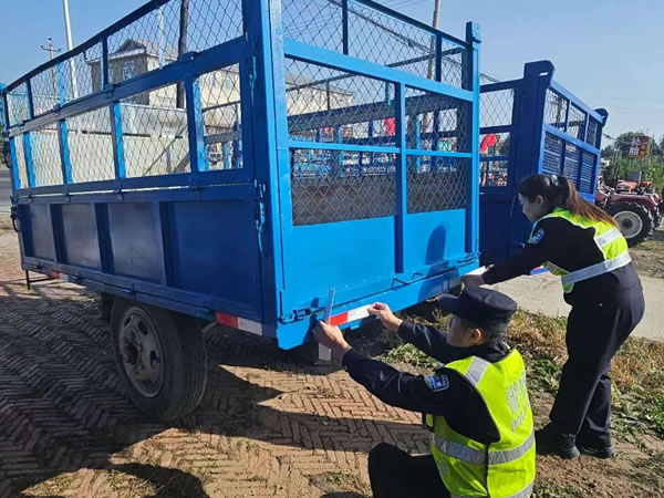 同時,積極開展“亮尾行動”。民警深入田間地頭和農戶家中,為沒有粘貼反光標識和反光標識陳舊的農用車輛及農業(yè)機械粘貼反光標識,消除事故隱患。農民朋友有的是沒時間或不知道到哪里買反光標識,宣傳民警親自上門免費粘貼,為他們解決了實際困難,農民朋友表示由衷的感謝。