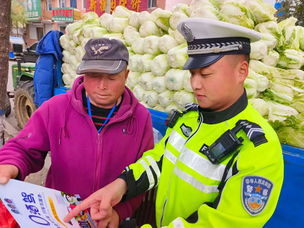 針對秋菜運(yùn)輸車輛多為農(nóng)用車型、駕駛員交通安全意識(shí)相對薄弱的特點(diǎn),交管民警們還化身“流動(dòng)宣傳員”。在臨時(shí)停靠點(diǎn),他們會(huì)主動(dòng)遞上交通安全手冊,用通俗易懂的語言講解“不超載、不搶道、不疲勞駕駛”等注意事項(xiàng);看到有的農(nóng)用車輛反光標(biāo)識(shí)陳舊或破損,便及時(shí)給予補(bǔ)充粘貼,并不厭其煩地講解反光貼的重要作用。一句句樸實(shí)的叮囑,讓農(nóng)戶們感受到實(shí)實(shí)在在的關(guān)懷。