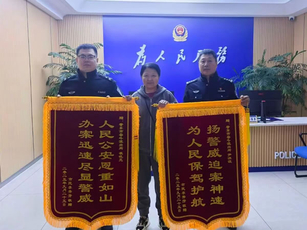 為表達(dá)對奮斗派出所民警、輔警的感激之情, 10 月 10 日,李女士特意制作了兩面寫有 “人民公安恩重如山,辦案迅速盡顯警威”“揚(yáng)警威破案神速,為人民保駕護(hù)航” 的錦旗,專程送到奮斗派出所,親手交到民警尹洪波和輔警崔曉亮手中,用最樸實(shí)的方式向守護(hù)群眾財(cái)產(chǎn)安全的人民警察致敬。
