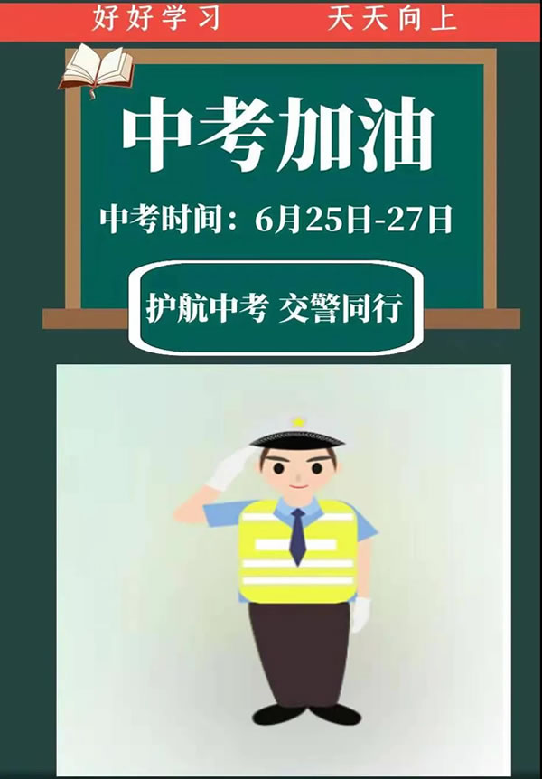 2.中考期間,所有機(jī)動車輛要嚴(yán)格遵守道路交通法規(guī),按照現(xiàn)場執(zhí)勤民警的指揮或根據(jù)交通指示牌指示行駛。