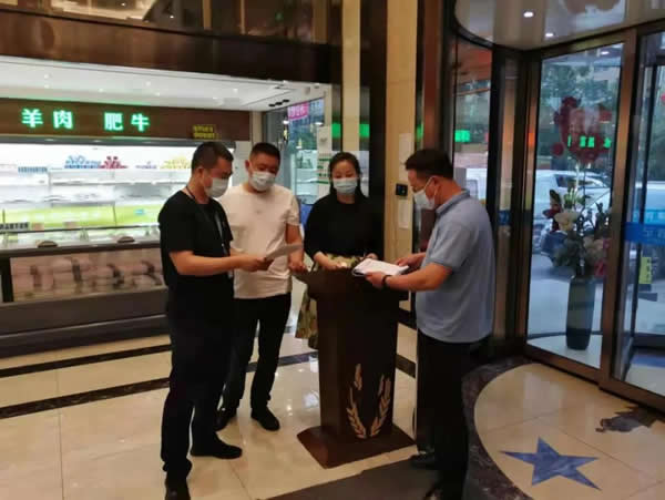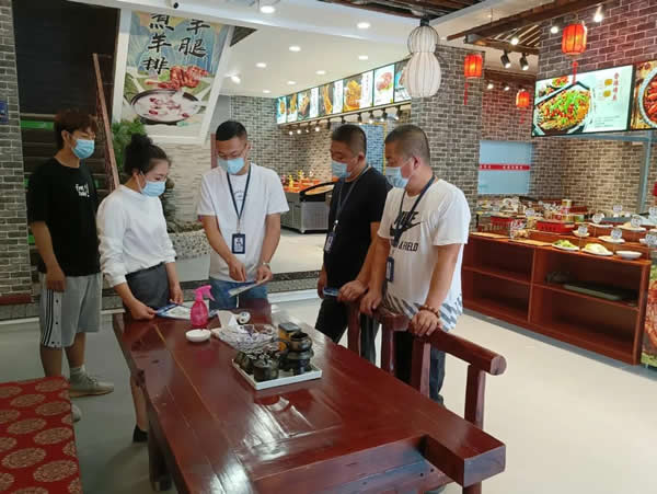 下午13時,我與志州對轄區(qū)2家大型餐飲場所進行了日常巡查,局里負責督導的兩位同志就趕到啦。我們4個人一起投入疫情防控工作中。