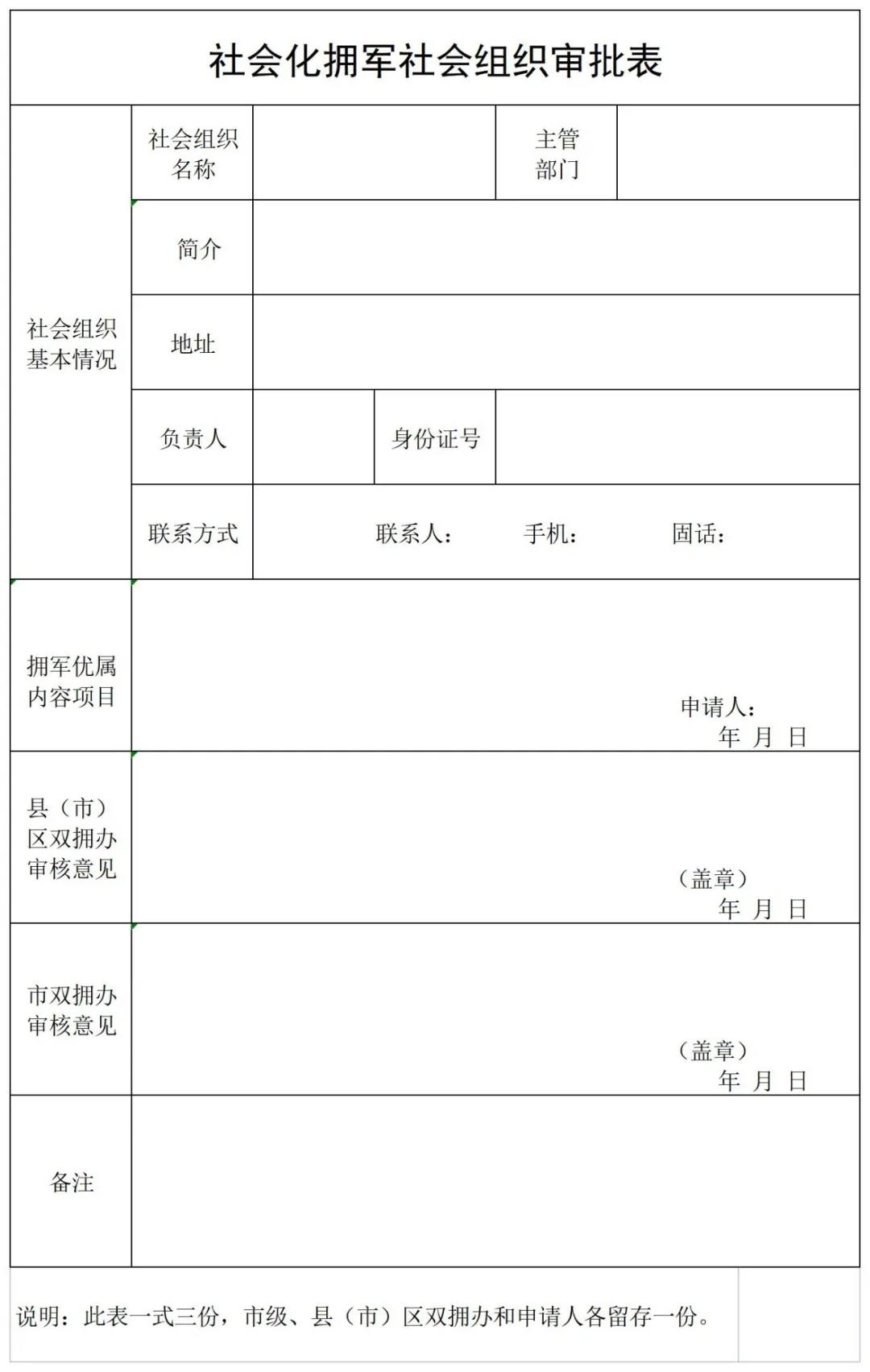 附件:《社會化擁軍企業(yè)(社會組織)審批表》