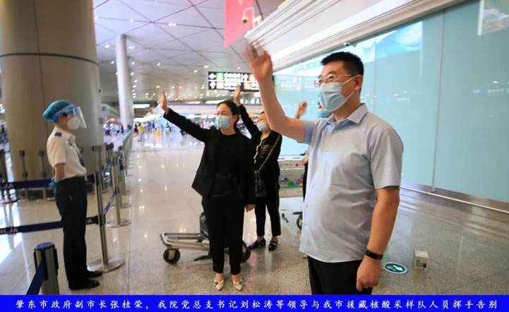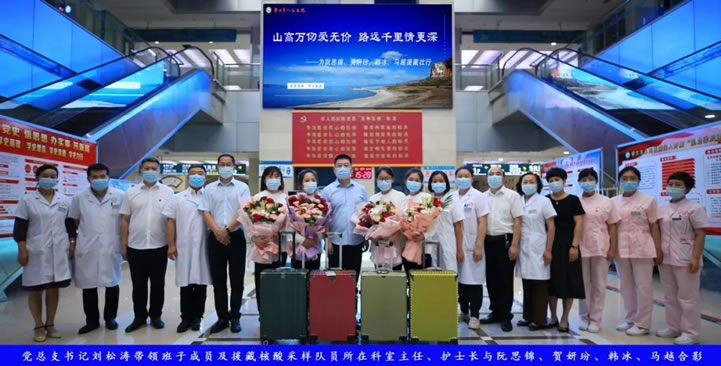 凌晨集結(jié),逆行出戰(zhàn)。2022年8月19日凌晨3:30分左右,當(dāng)大家還在酣睡夢(mèng)鄉(xiāng)時(shí),我院援藏隊(duì)員阮思錦、賀妍玢、韓冰、馬越已經(jīng)帶著家人、朋友、同事的叮嚀與不舍,帶著醫(yī)務(wù)工作者的擔(dān)當(dāng)與使命,在市政府集結(jié)后,便前往哈爾濱太平國(guó)際機(jī)場(chǎng)乘坐專(zhuān)機(jī)奔赴西藏,義無(wú)反顧地踏上了抗疫征程。市政府副市長(zhǎng)張桂榮,衛(wèi)健局黨組書(shū)記王琦,衛(wèi)健局副局長(zhǎng)初哲,衛(wèi)健局黨組成員趙芳,我院黨總支書(shū)記劉松濤,第一醫(yī)院黨總支書(shū)記呂哲及職工代表為我市援藏核酸采樣隊(duì)送行。