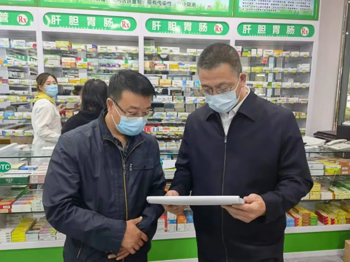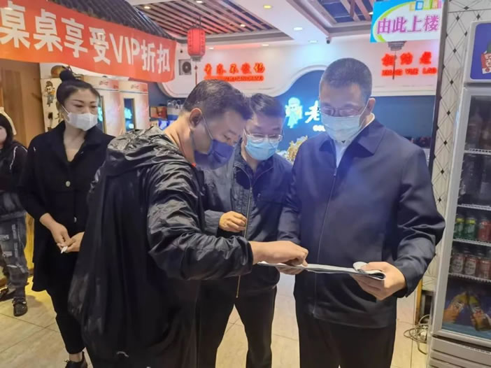單奎副市長一行重點檢查了餐飲、藥店以及鴻泰水果批發(fā)市場、陽光農(nóng)貿市場等業(yè)態(tài),對各場所進門測溫、掃碼、戴口罩以及消殺等防控措施執(zhí)行情況進行了細致檢查。
