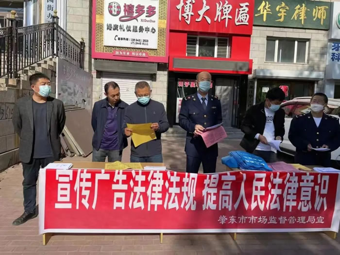 為增強(qiáng)廣大群眾對(duì)《廣告法》的認(rèn)識(shí),進(jìn)一步提高廣大市民識(shí)別虛假廣告的能力,引導(dǎo)消費(fèi)者理性消費(fèi),營造風(fēng)清氣正的廣告市場環(huán)境,肇東市市場監(jiān)督管理局廣告監(jiān)督管理股根據(jù)省市局安排,開展了廣告法普法宣傳活動(dòng)。