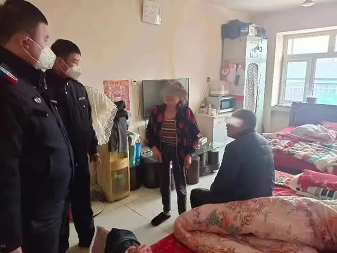 2022年11月28日上午8時,躍進派出所巡邏民警在躍進鄉(xiāng)全勝村公路旁積雪的壕溝里發(fā)現(xiàn)一名臥倒的老人,巡邏隊員立即上前查看情況,扶起老人后發(fā)現(xiàn)他神情恍惚、言語混亂,民警一時無法問清其姓名、住址、家人等基本情況。考慮到氣溫較低,外面又刮著風,民警將警服披在老人身上后立即將老人扶上車,并將老人帶回所里進一步核實身份,幫助聯(lián)系其家人。到派出所后,民警一邊為老人倒上熱水,一邊與老人通過聊家常的方式了解信息,在確認了老人的家庭住址在昌五鎮(zhèn)后,民警立即驅(qū)車將其送回了家,家屬稱老人因為患病,昨天晚上走失,家人找了一夜,如果不是派出所的警察發(fā)現(xiàn)后果不堪設想,家屬對派出所民警的援手救助表示衷心感謝。