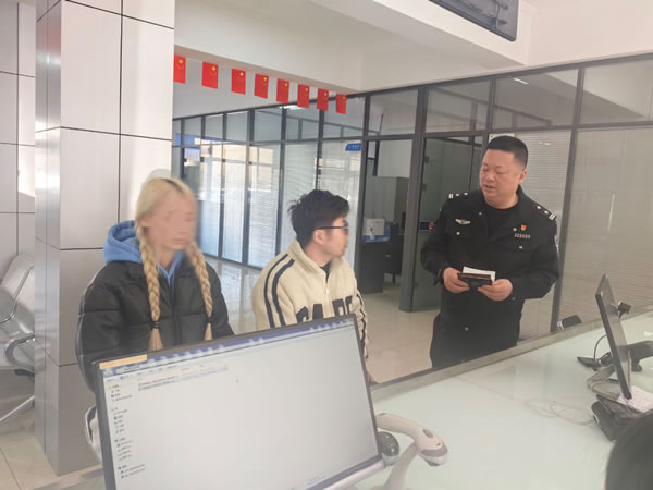 3月27日,肇東市公安局出入境管理大廳迎來了一對神情焦急的夫婦尋求幫助,肇東居民姜先生攜外籍妻子趕到出入境接待大廳咨詢辦理外國人簽證的相關(guān)問題,工作人員詢問得知,姜先生與妻子卡琳娜因工作原因長期居住在浙江省金華市,由于妻子卡琳娜簽證問題夫妻二人輾轉(zhuǎn)千里回肇東辦理簽證,民警秉承“群眾利益無小事、為民服務(wù)無終點(diǎn)”的理念,在審核基礎(chǔ)資料后,協(xié)助兩人僅用半小時就成功辦理了簽證,解決了群眾的實(shí)際困難,提高了群眾的獲得感、幸福感、安全感。