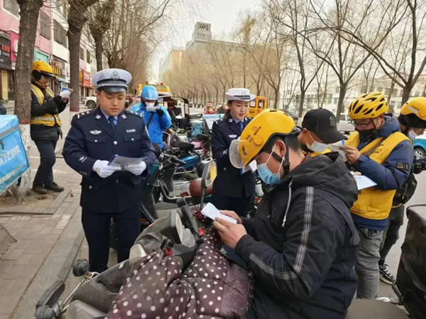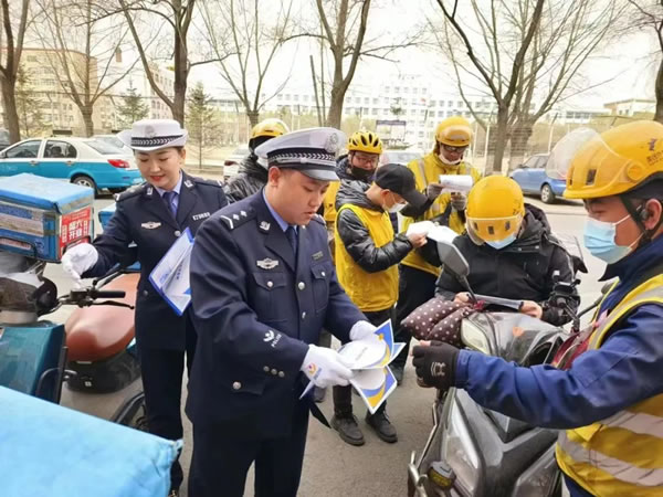 在快遞外賣企業(yè)及人員聚集場(chǎng)所,民警以發(fā)放宣傳資料、粘貼《黑龍江省電動(dòng)車管理?xiàng)l例》宣傳單等方式,詳細(xì)講解電動(dòng)車的種類、認(rèn)定標(biāo)準(zhǔn)、電動(dòng)車登記程序等通行規(guī)定。提醒廣大群眾在騎乘電動(dòng)車時(shí)要正確佩戴合格的安全頭盔,杜絕闖紅燈、逆向行駛、酒后駕駛等各類交通違法行為。引領(lǐng)廣大群眾遵守電動(dòng)車通行規(guī)定,摒棄交通陋習(xí),做到守法規(guī)知禮讓,安全文明出行。