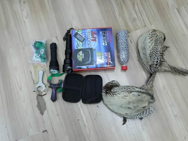 經(jīng)訊問(wèn),武某成、呂某、趙某勇對(duì)使用彈弓在鐵東區(qū)野草地中打野雞一事供認(rèn)不諱。三人所捕獲的野雞(學(xué)名環(huán)頸雉)為國(guó)家二級(jí)保護(hù)動(dòng)物。民警現(xiàn)場(chǎng)繳獲彈弓、鋼珠、強(qiáng)光手電、野雞叫聲設(shè)備等作案工具。據(jù)三人所述,當(dāng)天閑來(lái)無(wú)事酒后由于想滿(mǎn)足口腹之欲便準(zhǔn)備打點(diǎn)野味來(lái)嘗嘗鮮。開(kāi)車(chē)來(lái)到鐵東區(qū)草甸子,利用專(zhuān)業(yè)照明設(shè)備看到了野雞后便使用彈弓瞄準(zhǔn)、射殺、撿拾,但沒(méi)想到尚未嘗到美味,卻要咽下觸犯刑律的惡果。