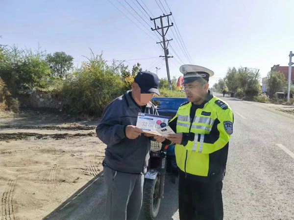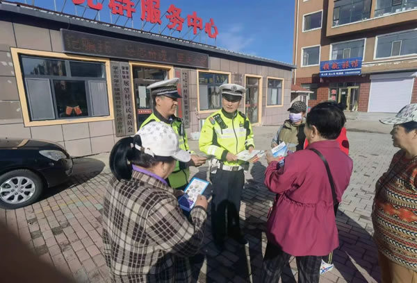 為扎實(shí)推進(jìn)道路交通事故預(yù)防“減量控大”及“保秋收壓事故”工作,切實(shí)增強(qiáng)農(nóng)村地區(qū)人民群眾的交通安全意識(shí),有效預(yù)防和減少農(nóng)村道路交通安全事故的發(fā)生。肇東市公安局交警大隊(duì)“雙節(jié)”期間全體取消休假,大部分民輔警走進(jìn)農(nóng)村,持續(xù)開(kāi)展交通安全宣講活動(dòng),讓文明交通之風(fēng)吹遍農(nóng)村的每一處角落。