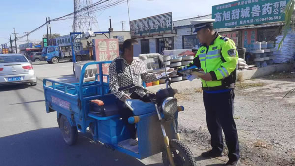 當前正值秋收旺季,為持續(xù)推進“保秋收 壓事故”專項整治行動,做好轄區(qū)農(nóng)村道路交通安全管理工作,全力遏制和減少秋收農(nóng)忙季節(jié)道路交通事故。近日,肇東公安交警聯(lián)合市農(nóng)業(yè)農(nóng)村局,積極組織人力深入村鎮(zhèn)開展交通安全宣傳活動,為秋收時節(jié)農(nóng)村地區(qū)筑牢交通安全防線。