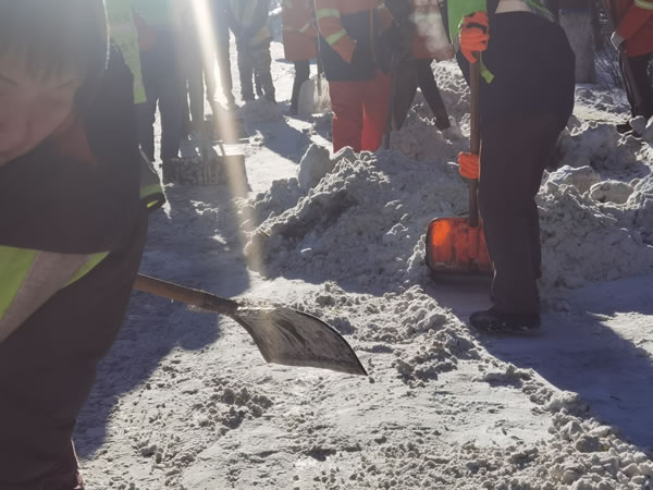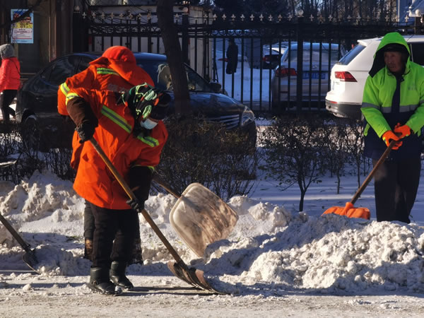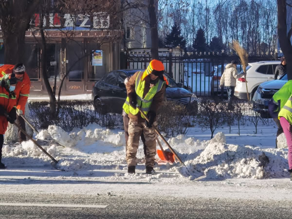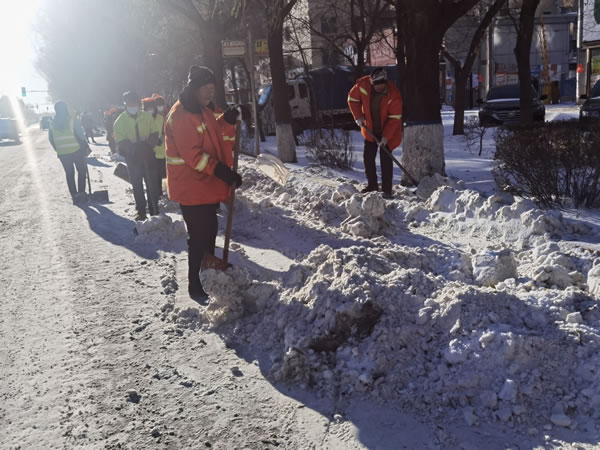 目前城區(qū)主干路已經露出了黑色的路面,積雪外運工作正在持續(xù)推進中。但由于此次降雪持續(xù)時間長,降雪量大,為了有效配合機械化清雪作業(yè),近七百名環(huán)衛(wèi)工人在肇東市主干路進行加班加點作業(yè),保證道路安全暢通。