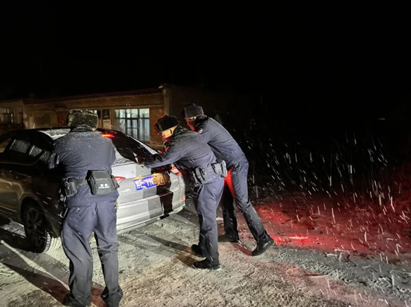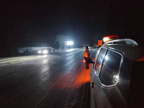 肇東市公安局交警大隊和國、省道沿線派出所民警輔警全員上崗,緊盯積雪結冰重點部位和車流密集場所周邊路段,積極采取措施,采取定點執(zhí)勤與流動巡邏相結合的方式,加強路面管控和交通疏導,全力防事故、保暢通。同時,增派人手,一旦發(fā)生交通事故,第一時間到達現(xiàn)場處置,并及時疏導交通,引導車輛有序通行。