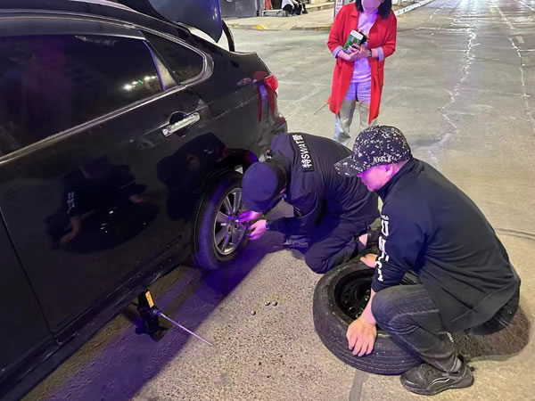 巡邏民警在接到女士的求助后迅速開展工作,他們首先安撫了群眾的情緒,并迅速評估了現(xiàn)場情況。在確認安全無誤后,民警展開了更換備胎的工作。在整個過程中,民警還向群眾傳授了一些基本的車輛維護知識,比如如何檢查輪胎氣壓、如何識別備胎是否適合當前車輛以及如何正確使用千斤頂。在備胎安裝完畢后,民警還仔細檢查了新車胎的氣壓,確保其符合標準。他們還提醒群眾,由于備胎通常是應急使用,其性能可能不如原廠輪胎,因此建議盡快到專業(yè)的汽車修理店進行檢查和更換。