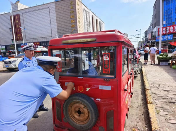 同時(shí),為沒有粘貼反光標(biāo)識和反光標(biāo)識殘缺、陳舊的農(nóng)用車輛、三輪車等免費(fèi)粘貼安全反光標(biāo)識,提升車輛夜間通行安全系數(shù),為農(nóng)民朋友駕車出行提供安全保證,筑牢道路交通安全防線。