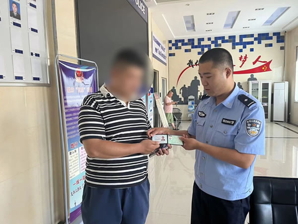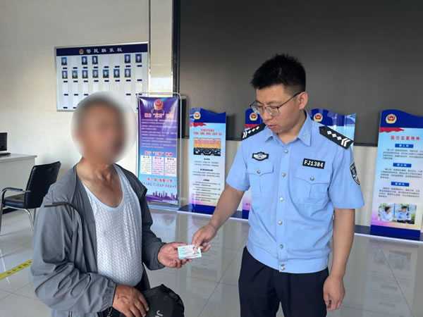 “警察同志,我撿到一個身份證,你們幫忙聯(lián)系一下失主吧,我這也聯(lián)系不上啊。”8月8日,一居民在利民城附近撿到一張身份證,并將證件送到轄區(qū)南城派出所。值班民警王鑫立即查看身份證,得知失主是戶籍地在太平鄉(xiāng)的居民王某山,根據(jù)身份信息進(jìn)行查詢,在得到有效聯(lián)系方式后,民警迅速撥通電話與失主取得聯(lián)系,告知其身份證已被熱心群眾撿到,不要著急,可以隨時到派出所來認(rèn)領(lǐng),并告訴其派出所的詳細(xì)地址。