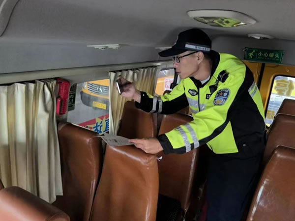 查驗(yàn)過(guò)程中,民警對(duì)校車(chē)標(biāo)志、滅火器、安全帶、安全錘、緊急逃生門(mén)、車(chē)輛燈光、停車(chē)指示牌、車(chē)輛年檢及保險(xiǎn)、輪胎的安全性能及校車(chē)技術(shù)狀況、安全駕駛情況以及校車(chē)安全管理措施落實(shí)情況等方面進(jìn)行安全大檢查。同時(shí)認(rèn)真核對(duì)了校車(chē)駕駛?cè)说鸟{駛資質(zhì),聽(tīng)取了校車(chē)負(fù)責(zé)人對(duì)校車(chē)出行方式、安全隱患排查整治、企業(yè)主體責(zé)任落實(shí)情況介紹,并要求校車(chē)駕駛?cè)艘杂X(jué)遵守交通法規(guī),安全行駛、平安出行。