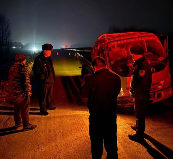 2024年11月27日20時許,家住哈爾濱市的個體司機(jī)王先生駕駛自營奧鈴牌貨車行駛至哈肇高速銀山服務(wù)區(qū)附近時,因粗心大意未做好車輛日常檢查,再加上道路冰雪濕滑,致使右側(cè)前輪脫落10余米,車輛發(fā)生單方事故。接到求助后,民輔警迅速協(xié)調(diào)因道路結(jié)冰封閉的哈肇高速,第一時間進(jìn)入高速公路開展施救。到達(dá)現(xiàn)場后,民輔警一邊安撫群眾情緒,一邊查看車輛輪胎情況并詢問車主是否還有備胎。同時聯(lián)系救援拖車,將事故車輛拖至安全路段。受冷空氣影響,因剛下過大雪,夜間溫度極低。但民輔警絲毫沒有受嚴(yán)寒天氣影響,考慮到群眾回家的急切心情,無一人嫌麻煩和放棄。經(jīng)過近半個小時的不懈努力,終于幫群眾將車帶離事故區(qū)域。