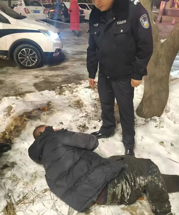 2025年2月9日20時10分許,肇東市公安局西城派出所接到110指揮中心指令,有居民劉女士報警稱,在肇東市中國人壽門前步行路上有一男子倒地不起,已有一個多小時之久。西城派出所民警接到警情后立即趕到現(xiàn)場。當(dāng)晚零下20多度,該男子躺在地上胡言亂語,處于醉酒狀態(tài),意識不清。