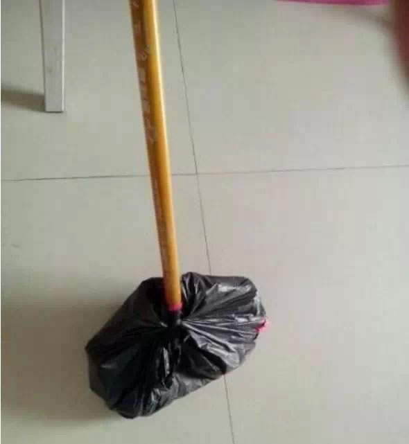 3.用塑料布包好拖把,地上的頭發(fā)會乖乖跟你走