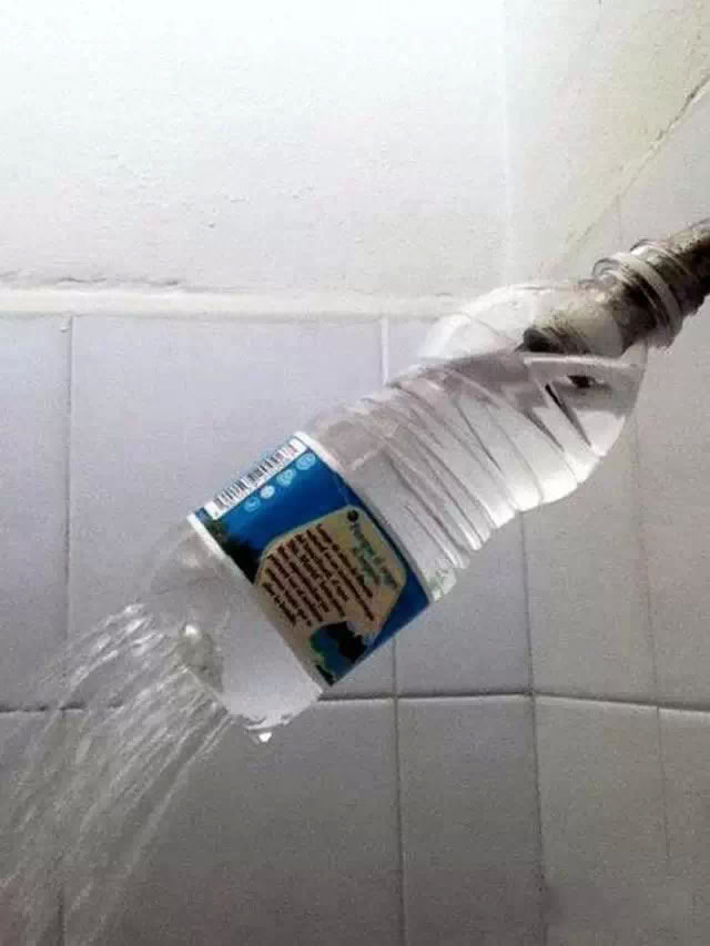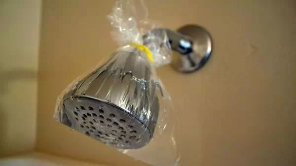 20.蓮蓬頭有的眼堵了怎么辦,據(jù)說用塑料袋里倒點醋像這樣扎在噴頭上泡一夜就能通了。