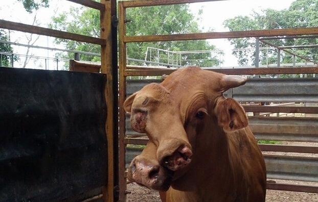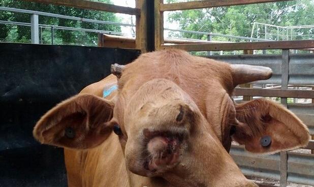 【雙面牛驚現(xiàn)澳大利亞】澳大利亞媒體11日報道,澳昆士蘭北部地區(qū)一家出售了一條“雙臉牛”。根據(jù)社交媒體上的Po圖,這頭牛的第二張臉上有一只眼睛,倆鼻孔和一只牙齒。