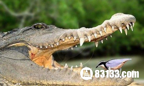 鱷魚對待弱小動物兇惡殘忍,為什么對待牙簽鳥卻是那樣的仁慈和謙讓呢?這是因為,牙簽鳥是一種非常機敏的鳥類,它在啄食鱷魚牙縫中的殘食時,格外警惕周圍的一切,充當(dāng)著鱷魚的義務(wù)警衛(wèi)員。一旦發(fā)現(xiàn)了敵情,便驚叫幾聲向鱷魚報警,鱷魚得到報警信號后,便潛入水底避難。